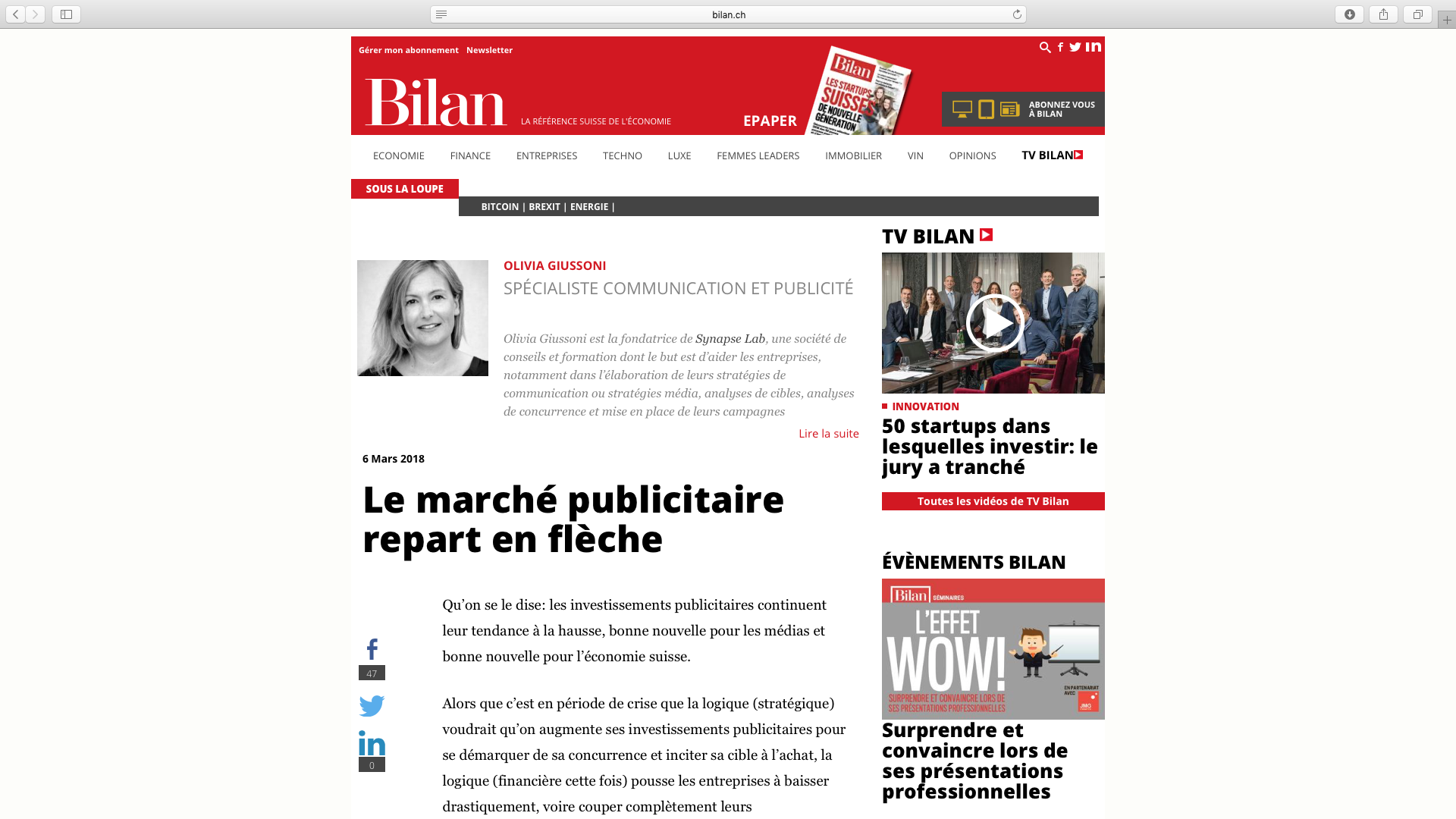 Qu’on se le dise, les investissements publicitaires continuent leur tendance à la hausse, bonne nouvelle pour les médias et bonne nouvelle pour l’économie suisse. Alors que c’est en période de crise que la logique (stratégique) voudrait qu’on augmente ses investissements publicitaires pour se démarquer de sa concurrence et inciter sa cible à l’achat, la logique [...]